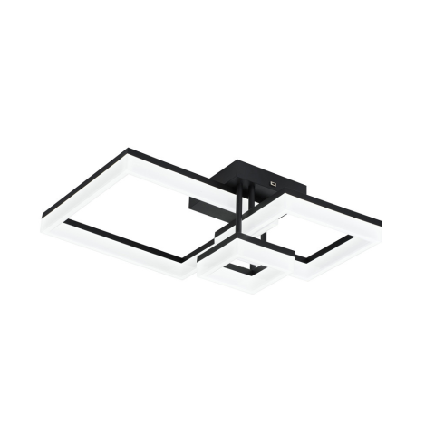 A Rábalux Amilia mennyezeti lámpát azoknak ajánljuk, akik a funkcionalitás mellett szem előtt tartják a kreatív formatervezést is. Ez a LED lámpa modern stílusban, elegáns fekete-fehér színkombinációban, fém testtel és műanyag búrával készül. A látványos modellt három különböző méretű, négyzet alakú lámpaelem alkotja, és szögletes, fekete dísztalp segítségével rögzíthető a mennyezetre. A lámpa beépített LED fényforrást tartalmaz, amelynek színhő