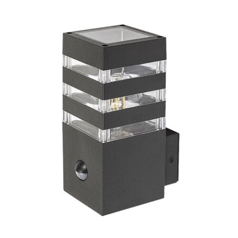 ANKARA Kültéri fali lámpa antracit/átlátszó E27 1x MAX 12W Színhőmérséklet: Lámpatest fényárama (lumen): Fényforrás fényárama (lumen): Teljesítmény: LED technológia: IP védettség: IP44 Mozgásérzékelő műszaki adatok: 6-8m, 105° Lámpa színe: antraci