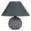 A modern stílusú Ariel éjjelilámpa kellemes, lágy formáival kedvelt darabja lehet a hálószoba berendezésének. A szürke színű modell gömbölyded dísztalpa kerámiából, alul-felül nyitott, trapéz alakú ernyője pedig textilből készül. A sötét színű lámpaernyőn át finoman kiszüremlő fény garantáltan nem fogja megzavarni partnerünk álmát. Az asztali lámpa egy darab legfeljebb 40 W teljesítményű, G45-ös formájú fényforrással használható, a foglalat típ