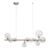 Az Aslov Rábalux 72298 függesztett lámpa arany színű fém és áttetsző üveg anyagok felhasználásával készült, modern megjelenésű világítási megoldás. A lámpatest tíz darab G9 foglalattal rendelkezik, amelyekhez cserélhető fényforrás illeszthető, így a fényá