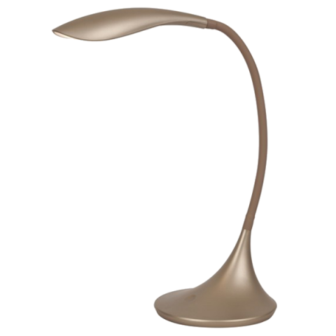 Modern megjelenésű asztali lámpa beépített energiatakarékos LED fényforrással és 3 fokozatban állítható, érintőkapcsolós fényerősségszabályozóval. 52 cm magas, 32 cm széles, pezsgő színű műanyag lámpatest és műanyag lámpabúra. A beépített LED-es lámpa teljesítménye 5,3 W, melyhez 520 lumen fényerő társul. Színhőmérséklete melegfehér (3000 Kelvin). 5 év garanciával. A lámpatestben elhelyezett fényforrás nem cserélhető.