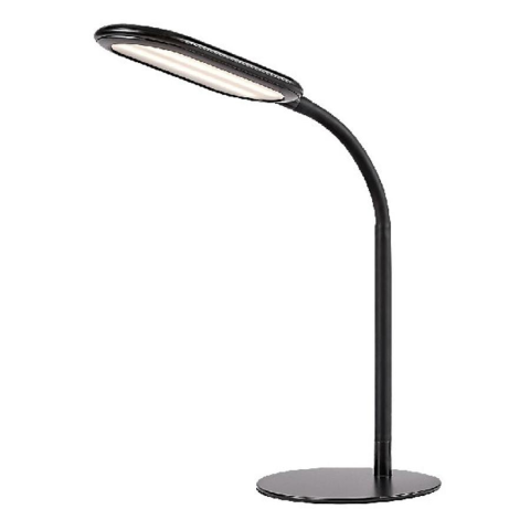 Az Adelmo asztali lámpa egyszerű, letisztult formatervezésének, valamint extra funkcióinak köszönhetően remek választás lehet bármely modern dolgozószoba íróasztalára. A fémből, fekete színben készült modellt karcsú, ívesen hajlított szár és egészen lapos kialakítású lámpafej jellemzi, amely oldalról szinte a szár egyenes meghosszabbításának tűnik. A lámpát fehér műanyagbúra és kerek dísztalp egészíti ki. Az Adelmo beépített LED fényforrással rend