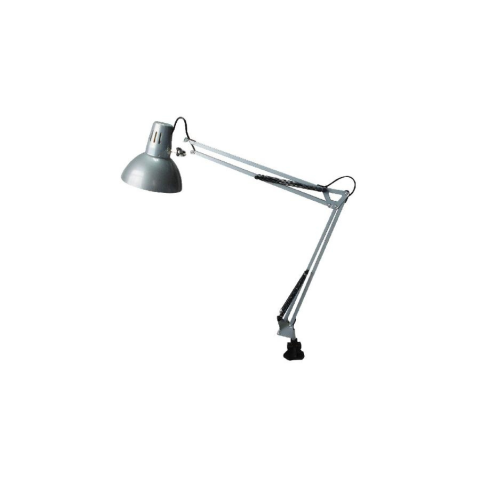 Nagyobb munkaterületen is megfelelő megvilágítást biztosító, időtlen megjelenésű asztali lámpa állítható karral és fejjel, 70 cm-es magassággal, ezüst színben. Fém alapanyag, tartós kivitel, IP20-as védettség. A lámpatest E27-es foglalatú, maximum 60W teljesítményű halogén vagy energiatakarékos fényforrással használható.
