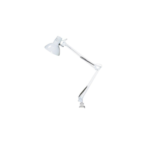 Nagyobb munkaterületen is megfelelő megvilágítást biztosító, időtlen megjelenésű asztali lámpa állítható karral és fejjel, 70 cm-es magassággal, fehér színben. Fém alapanyag, tartós kivitel, IP20-as védettség. A lámpatest E27-es foglalatú, maximum 60W teljesítményű halogén vagy energiatakarékos fényforrással használható.