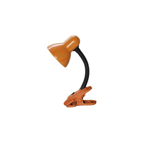 Asztali lámpa praktikus csíptethető rögzítési megoldással. Narancssárga és fekete színű, fémből és műanyagból készített lámpatest, állítható pozíciójú fém búra, 34 cm-es magasság. A lámpatest max. 40W teljesítményű, E27-es foglalatú, halogén és energiatakarékos fényforrással használható.