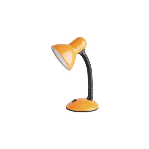 Időtlen megjelenésű asztali lámpa 1 db foglalattal. 23 cm széles, 34,5 cm magas, narancssárga színű műanyag lámpatest és pozícionálható lámpabúra. A lámpatest E27-es foglalatú, max. 40W teljesítményű energiatakarékos fényforrással is használható.