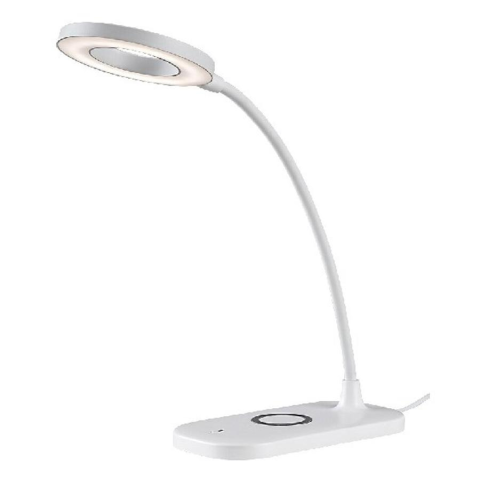 A modern Hardin asztali lámpa számos extra funkciójával nélkülözhetetlen társa lesz a dolgozószobában vagy bármely íróasztalnál. A teljes egészében műanyag okos lámpa fehér színben fehér búrával készül, a lámpafej fánk formájú, a téglalap alakú dísztalp lekerekített sarkakat kapott. A Hardin a G energiaosztályba tartozó beépített LED fényforrással rendelkezik, amelynek a teljesítménye 5 W, fényereje búrával 210 lumen, búra nélkül 720 lumen, élet