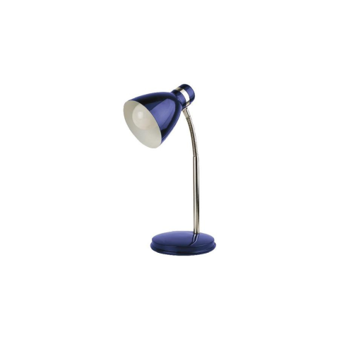 Praktikus íróasztali megvilágítást biztosító asztali lámpa. 32 cm magas, fémből készített, kék és króm színű lámpatest, kék színű, pozícionálható lámpabúrával, hálózati vezetékkel és kapcsolóval. A lámpatest max. 40W teljesítményű, E14-es foglalatú, halogén és energiatakarékos fényforrással is használható.