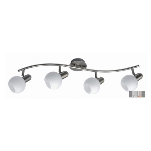 A Karos mennyezeti spot lámpa négy foglalattal, Aurel Rábalux 6344 modell, modern stílusú lakásvilágítási megoldás. A lámpatest négy darab E14 foglalattal rendelkezik, amelyek cserélhető fényforrásokkal szerelhetők fel. A szerkezet fő anyaga fém, míg a bu