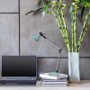 A menta színben, fémből készült letisztult Carter asztali lámpa jó szolgálatot tehet a dolgozószobában vagy iskolás gyermekeink íróasztalán. A barna színű kábel kiegyensúlyozza a karakteres megjelenést. A lámpa világos színének köszönhetően lányos szobába