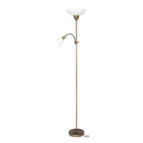 Rábalux 4068 Diana Állólámpa Klasszikus állólámpa külön kapcsolható olvasókarral. 177.5 centiméteres magas bronz színű fém szerkezet fehér opálüveg és műanyag lámpabúrákkal. Az állólámpa felső lámpateste E27-es foglalatban G45-ös formájú, maximum 60W tel