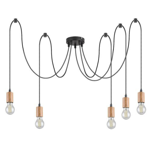 DOLLIEN Függeszték matt fekete/bükk E27 5x MAX 60W Színhőmérséklet: Lámpatest fényárama (lumen): Fényforrás fényárama (lumen): Teljesítmény: LED technológia: IP védettség: IP20 Mozgásérzékelő műszaki adatok: Lámpa színe: matt fekete Búra színe: b