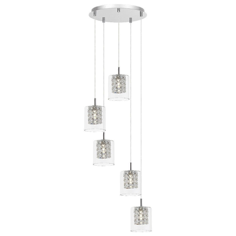 A Duchess Rábalux 3117 függesztett kristály lámpa modern stílusú kialakítással rendelkezik, amely öt darab G9 foglalattal szerelt, így cserélhető fényforrásokat használ. A lámpatest anyaga fém és üveg, színe króm és áttetsző, amely elegáns megjelenést biz