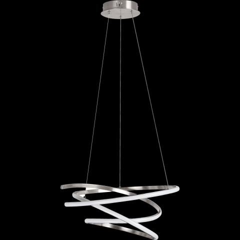 A modern stílusú, jelentős fényerővel bíró Esilda függeszték nappalink berendezésének látványos és elegáns darabja lehet. A fémből készült szatinkróm színű lámpát fehér műanyagbúra egészíti ki, és kerek dísztalp segítségével rögzíthető a mennyezetre. Az egyetlen gyűrűszerű, véletlenszerűen kanyargó elemből álló modell könnyed és légies megjelenésű. Az Esilda a G energiaosztályba tartozó beépített LED fényforrással rendelkezik, amelynek a t