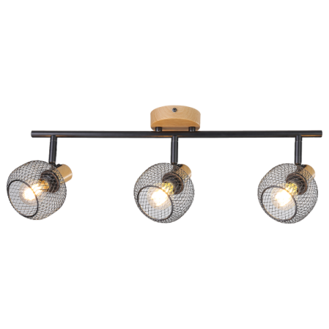 1 kép RÁBALUX GRENDEL SPOTLÁMPA E14 3xMAX.40W IP20 HÁLÓS BÚRÁVAL 10X53CM FÉM BÜKK-FEKETE