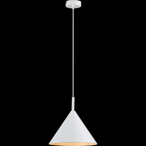 Az indusztriális stílusú Jarod függeszték egyszerű formatervezésével sok modern nappali és étkező berendezéséhez megfelelő választás lehet. A teljes egészében fémből készült, fehér színű modellt lefelé szélesedő, A vonalú búra egészíti ki, és a lámpa kisméretű, kerek dísztalp segítségével rögzíthető a mennyezetre. A Jarod egy darab legfeljebb 40 W teljesítményű fényforrással használható, a foglalat típusa E27. Ízléstől függően választhatun