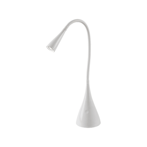 A modern stílusú Jeff 2 okos asztali lámpa praktikus választás lehet a nappaliba, a hálószobába vagy a dolgozószobába. A műanyagból készült, fényes fehér színű modellt fehér fémbúra egészíti ki, míg a lámpa karcsú szára szoknyaszerűen kiszélesedő, tömör dísztalpban végződik. A lámpa szára rugalmas, így segítségével az asztali lámpa fényét igény szerint irányíthatjuk. A Jeff 2 a G energiaosztályba tartozó beépített LED fényforrással rendelkezik