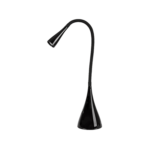 A modern stílusú Jeff 2 okos asztali lámpa praktikus választás lehet a nappaliba, a hálószobába vagy a dolgozószobába. A műanyagból készült, fényes fekete színű modellt fehér fémbúra egészíti ki, míg a lámpa karcsú szára szoknyaszerűen kiszélesedő, tömör dísztalpban végződik. A lámpa szára rugalmas, így segítségével az asztali lámpa fényét igény szerint irányíthatjuk. A Jeff 2 a G energiaosztályba tartozó beépített LED fényforrással rendelkezik