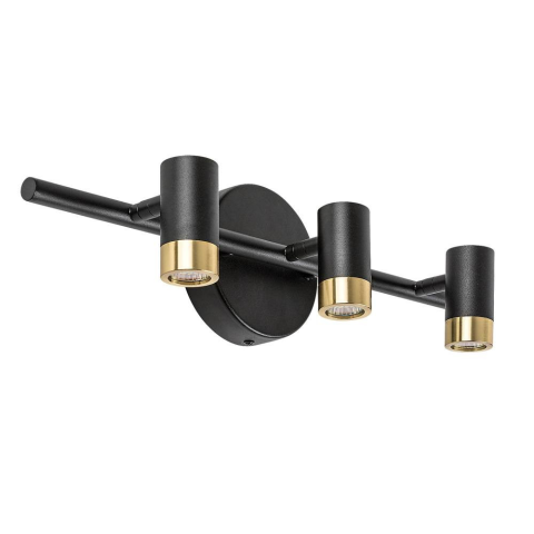 A Rábalux Kadir hármas fali lámpát azoknak ajánljuk, akik a letisztult formavilágot eleganciával ötvöző modellt keresnek. Ez a LED lámpa az indusztriális stílus jegyében fogant fekete és arany színű, hengeres testtel és átlátszó műanyag búrákkal. A dísztalp kerek formával, fekete színben készül, és hosszú, vízszintes rúd kapcsolódik hozzá. Ez tartja a három lefelé néző, szimmetrikusan elhelyezett lámpafejet. A falikar kapcsolóval rendelkezik, valamint be