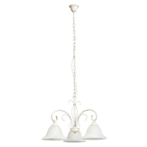 Rábalux 7191 Katherine lámpa függeszték E27 3x60W a.fehér Vintage stílusú csillár 3 db foglalattal. 120 cm lelógású, 55 cm átmérőjű, antik fehér színű fémből készített lámpatest alabástromüveg lámpabúrákkal. A függeszték E-27-es foglalatú, max. 3x 60W