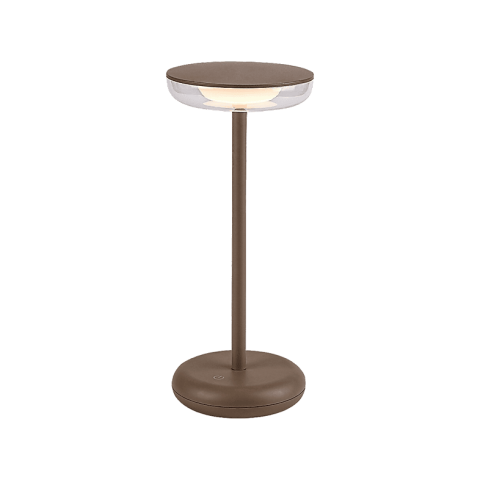 A modern stílusú Konin kültéri dekoratív lámpa kellemes, hangulatos megjelenésével remek választás a teraszra vagy a kertbe. A karamellszínű modell fémből, átlátszó műanyagbúrával készül, és kerek, a lámpafej méretével megegyező méretű kerek dísztalp egészíti ki. A lámpa beépített LED fényforrásának a teljesítménye 6 W, fényereje búrával 60 lumen, búra nélkül 160 lumen, élettartama 25 000 óra. A 3000 K színhőmérsékletű fényforrás meleg fehé