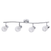 A Lauren Rábalux 6094 mennyezeti spot lámpa négy darab E14 foglalattal rendelkezik, amelyekbe cserélhető fényforrások helyezhetők. A lámpatest modern stílusú, anyaga fém és üveg, felülete króm színű, az üveg búra áttetsző. A termék IP20 védettséggel ellát