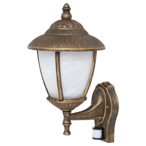 Klasszikus Madrid Kültéri fali lámpa E27 antik arany Fényforrás színhőmérséklet: Fényforrás fényárama (Lumen): Fényforrás műszaki adatok: LED technológia: Nem IP védettség: IP43 Mozgás érzékelő műszaki adatok: 8m, 120° Lámpa színe: antik arany Búra