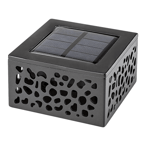A modern stílusú, szögletes Medulin kültéri napelemes asztali lámpa remek választás lehet a teraszon elköltött kellemes vacsorákhoz és nyáresti beszélgetésekhez. A műanyagból készült, körös-körül szabálytalan mintákkal áttört fekete lámpatestet tejszínű üvegbúra egészíti ki. A Medulin beépített LED fényforrással rendelkezik, amelynek teljesítménye 0,5 W, fényereje búrával 8 lumen, búra nélkül 10 lumen, színhőmérséklete pedig 3000 K. A meleg fehé