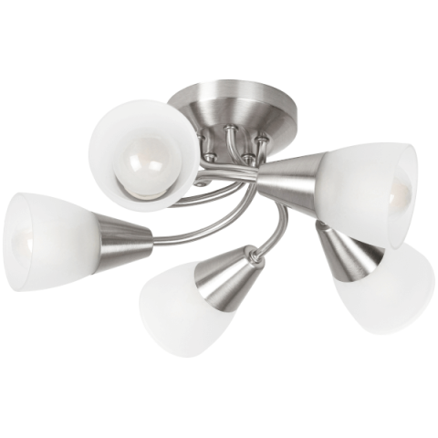 A Connor Rábalux 5691 mennyezeti lámpa modern stílusban készült, öt darab E14 foglalattal rendelkezik, amelyek lehetővé teszik a fényforrások cseréjét a kívánt fényáram, színhőmérséklet és teljesítmény szerint. A lámpatest fő anyagai a fém és az üveg, opá