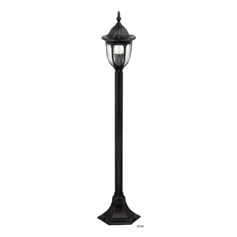 Rábalux 8345 Milano Kültéri állólámpaKlasszikus megjelenésű kültéri talpas lámpa 1 db foglalattal. 102 centiméter magas, a lámpatestnél 19 centiméter átmérőjű, fekete színű, fémből készített lámpatest és üvegbúra, IP43-as védettséggel. A lámpatest E27-es