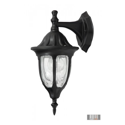 Milano kültéri fali lefelé álló, fekete színben. "Klasszikus megjelenésű kültéri falikar 1 db foglalattal. 20,5 cm kinyúlású, 37 cm magas, fekete színű, fémből készített lámpatest és üvegbúra, IP43-as védettséggel. A lámpatest E27-es foglalatú, max. 60W teljesítményű fényforrással használható. Fényforrás nélkül értékesítjük."