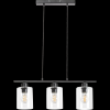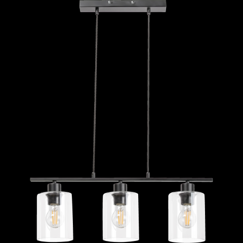 Az indusztriális stílusú Miroslaw függeszték modern nappalink, hálószobánk vagy dolgozószobánk berendezésének jellegzetes darabja lehet. A matt fekete színű, fém lámpatestet három henger alakú, átlátszó üvegbúra egészíti ki, amelyek teljes egészében látni engedik a lámpa belsejében a fényforrásokat. A függeszték hosszúkás, szögletes dísztalp segítségével rögzíthető a mennyezetre, amelyet két, textilből készült tartókábel köt össze a lámpafejek