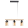 A Niylah Rábalux 72083 függesztett lámpa három E27 foglalattal rendelkezik, amelyek lehetővé teszik különböző cserélhető fényforrások alkalmazását. A lámpatest anyaga fém, fa és üveg kombinációja, amely fekete és borostyán színvilággal jelenik meg. A term