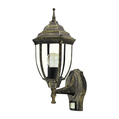 Klasszikus Nizza Kültéri fali lámpa E27 antik arany Fényforrás színhőmérséklet: Fényforrás fényárama (Lumen): Fényforrás műszaki adatok: LED technológia: Nem IP védettség: IP43 Mozgás érzékelő műszaki adatok: 8m, 120° Lámpa színe: antik arany Búra