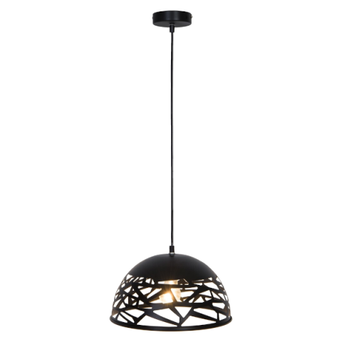 A Norena függeszték visszafogott, egyszersmind stílusos kiegészítője lehet modern nappalinknak vagy étkezőnknek. A matt fekete színű modell teljes egészében fémből készül, a lámpa kisméretű, kerek dísztalp segítségével rögzíthető a mennyezetre. A Norenát bátran felszerelhetjük egy világos színek uralta helyiségben is, remek kontrasztot fog alkotni a berendezés többi részével. A félgömb alakú búrán vágott, véletlenszerű minták szabad utat engednek a f
