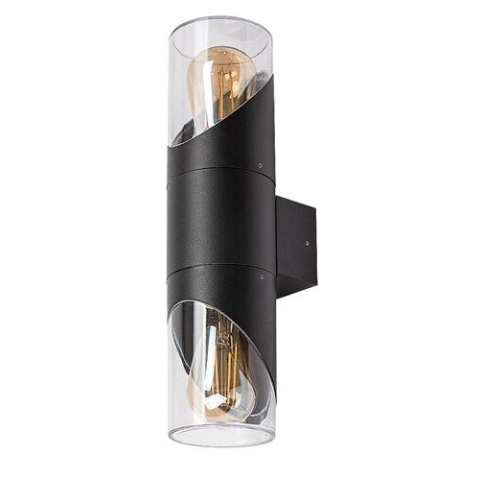 NOVIGRAD Kültéri fali lámpa fekete/átlátszó E27 2x MAX 28W Színhőmérséklet: Lámpatest fényárama (lumen): Fényforrás fényárama (lumen): Teljesítmény: LED technológia: IP védettség: IP54 Mozgásérzékelő műszaki adatok: Lámpa színe: fekete Búra színe