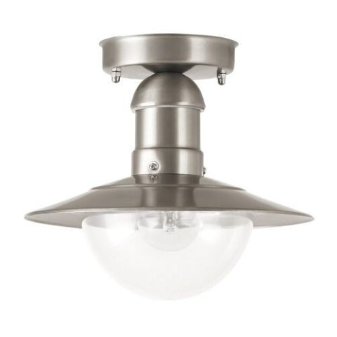 Mediterrán Oslo Kültéri mennyezeti lámpa E27 szatin króm Fényforrás színhőmérséklet: Fényforrás fényárama (Lumen): Fényforrás műszaki adatok: LED technológia: Nem IP védettség: IP44 Mozgás érzékelő műszaki adatok: Lámpa színe: szatin króm Búra szí