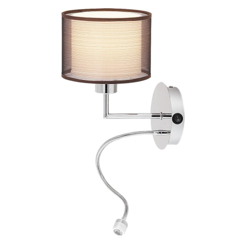 Anastasia fali lámpa, E27 foglalat, 60W+led 1W, króm/barna színben.
