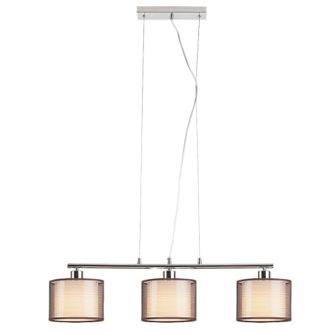 Az Anastasia Rábalux 2630 függesztett lámpa három E27-es foglalattal rendelkezik, amely lehetővé teszi a fényforrások cseréjét és a kívánt fényerősség beállítását. A lámpatest modern stílusban készült, barna és ezüst színkombinációval, textil és fém anyag