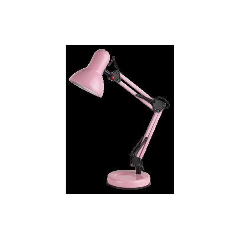 A Samson Rábalux 4179 rózsaszín íróasztali lámpa modern kialakítású, állítható szerkezettel rendelkezik, amely 49 cm magasságig emelhető. A lámpatest fémből készült, rózsaszín és fekete színkombinációval. Egy darab E27 foglalattal szerelt, a fényforrás cs