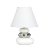 A Salem Rábalux 4949 éjjeli lámpa modern stílusú, fehér-króm kő torony dizájnnal és 25 cm magassággal rendelkezik. A lámpatest kerámiából és textilből készült, amely letisztult megjelenést biztosít. Egy darab E14 foglalattal szerelt, a fényforrás cserélhe