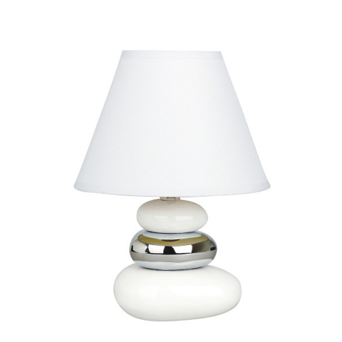 A Salem Rábalux 4949 éjjeli lámpa modern stílusú, fehér-króm kő torony dizájnnal és 25 cm magassággal rendelkezik. A lámpatest kerámiából és textilből készült, amely letisztult megjelenést biztosít. Egy darab E14 foglalattal szerelt, a fényforrás cserélhe