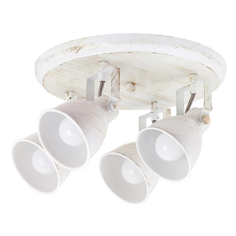 A Vivienne Rábalux 5969 mennyezeti spot lámpa négy E14 foglalattal rendelkezik, amelyek mindegyike cserélhető fényforrást támogat. A lámpatest fehér, antikolt felületkezelésű fém anyagból készült, vintage stílusú megjelenéssel. Az eszköz átmérője 300 mm,