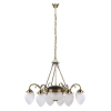 Klasszikus megjelenésű csillár 8 db foglalattal. 110 cm lelógású, 70 cm átmérőjű, bronz színű fém lámpatest és aprólékosan kidolgozott üveg lámpabúrák. A függeszték központi lámpateste E27-es foglalatú, max. 2x 60W teljesítményű, míg karjai E14-es foglal..