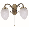 Klasszikus megjelenésű fali lámpa 2 db foglalattal, húzókapcsolós kivitelben. 37 cm széles, bronz színű fém lámpatest és aprólékosan kidolgozott üveg lámpabúrák. A lámpatest E14-es foglalatú, max. 2x 40W teljesítményű energiatakarékos fényforrásokkal is ..