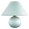 Hangulatvilágítást biztosító, időtlen stílusú éjjeli lámpa. Matt fehér színű, kerámiából készített lámpatesttel és textil lámpabúrával, hálózati vezetékkel és kapcsolóval, 19 cm-es magassággal, 20 cm-es átmérővel. A lámpatest max. 40W teljesítményű, E14-e..