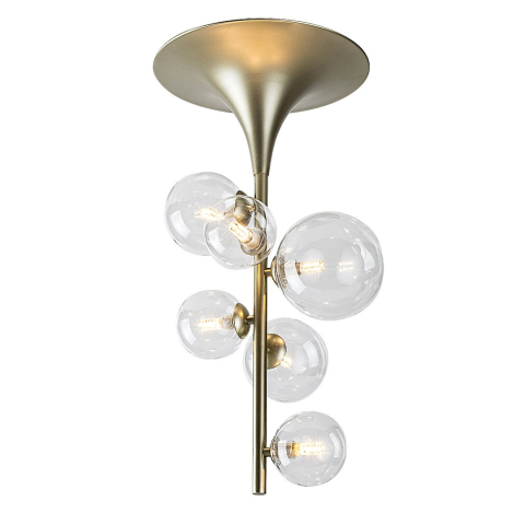 A Rábalux Aslov hatos mennyezeti lámpát azok figyelmébe ajánljuk, akik kedvelik a látványos, ragyogó modelleket. A fémből készült lámpatest arany színben tündököl, míg a kapcsolódó gömb alakú búrák átlátszó üvegből készülnek. A változatos méretű lámpafeje..