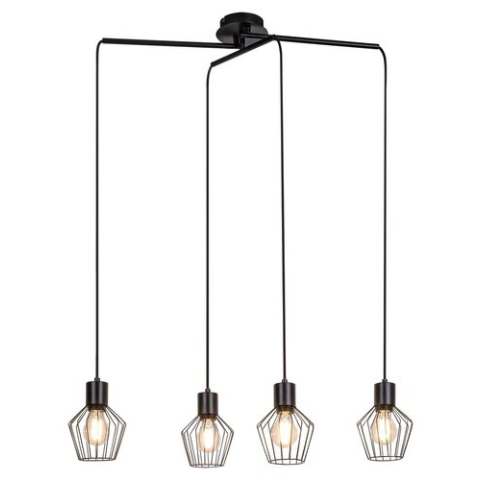 Az indusztriális stílusú Belano négyes függeszték modern nappalink, hálószobánk vagy dolgozószobánk berendezésének jellegzetes darabja lehet. A teljes egészében fémből készült, matt fekete lámpát a rácsos búrák teszik különlegessé és kerek dísztalp segíts..