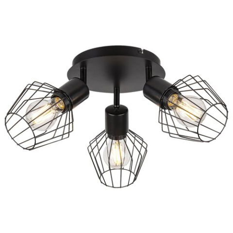Az indusztriális stílusú Belano hármas spotlámpa modern nappalink, hálószobánk vagy dolgozószobánk berendezésének puritán darabja lehet. A teljes egészében fémből készült, matt fekete lámpát a rácsos búrák teszik különlegessé és nagyméretű, kerek dísztalp..