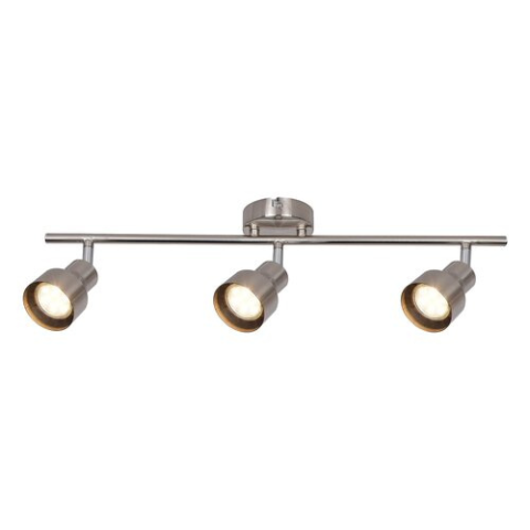 A modern stílusú Blake hármas spotlámpa a lakás számos helyiségébe jó választás lehet: felszerelhetjük a nappaliban, a hálószobában, de az étkezőben vagy akár a konyhában is. A teljes egészében fémből készült, szatinkróm színű lámpa kerek dísztalp segítsé..